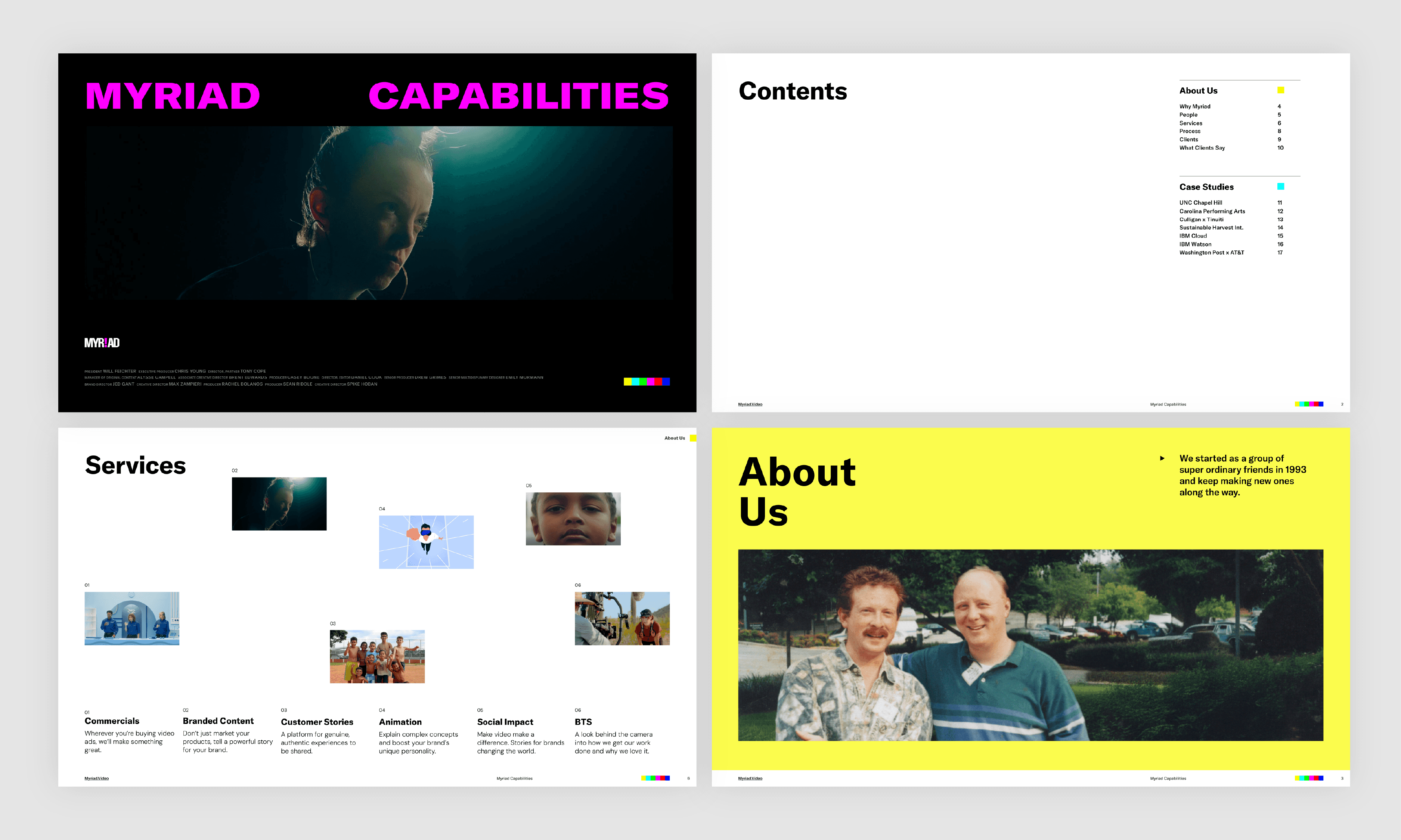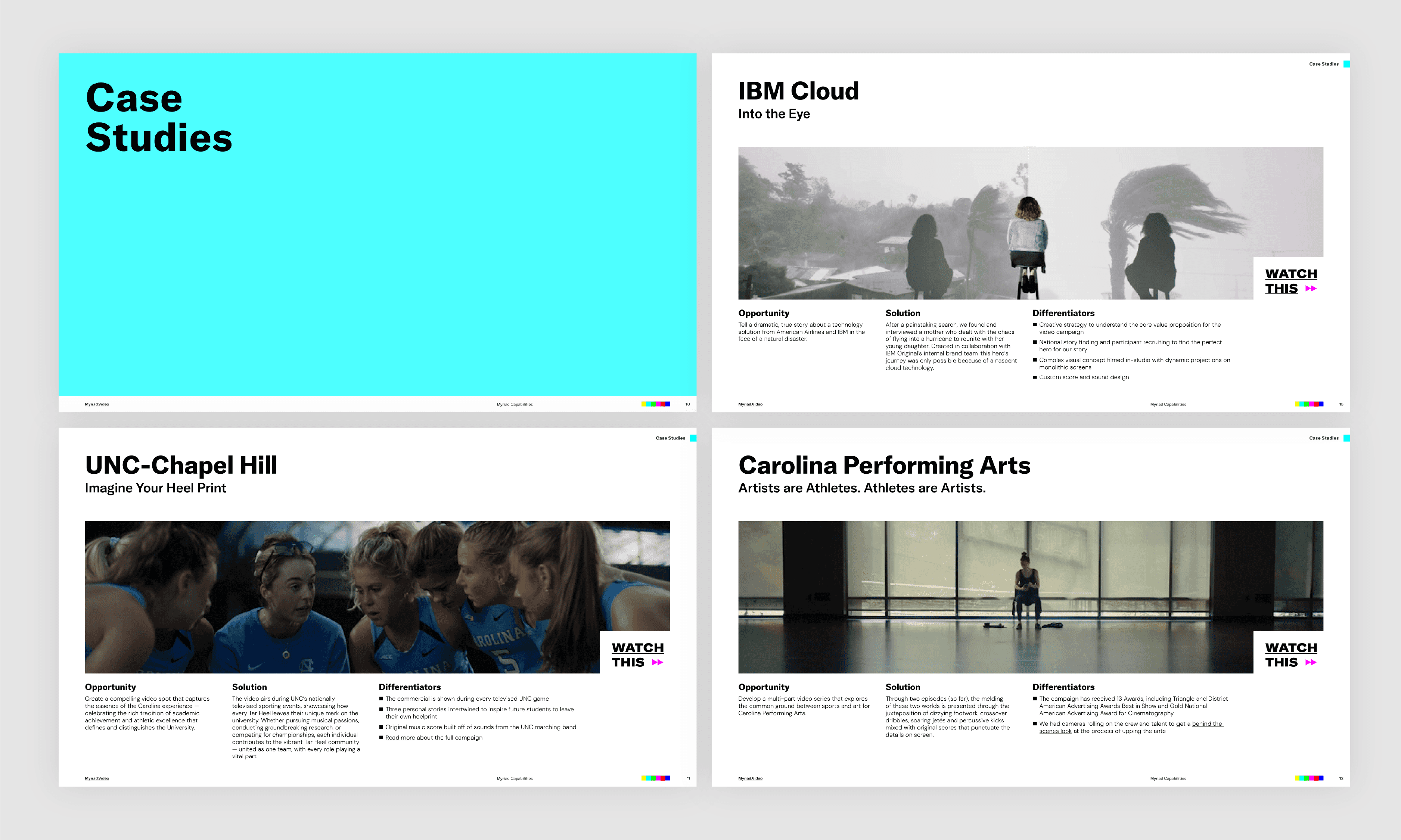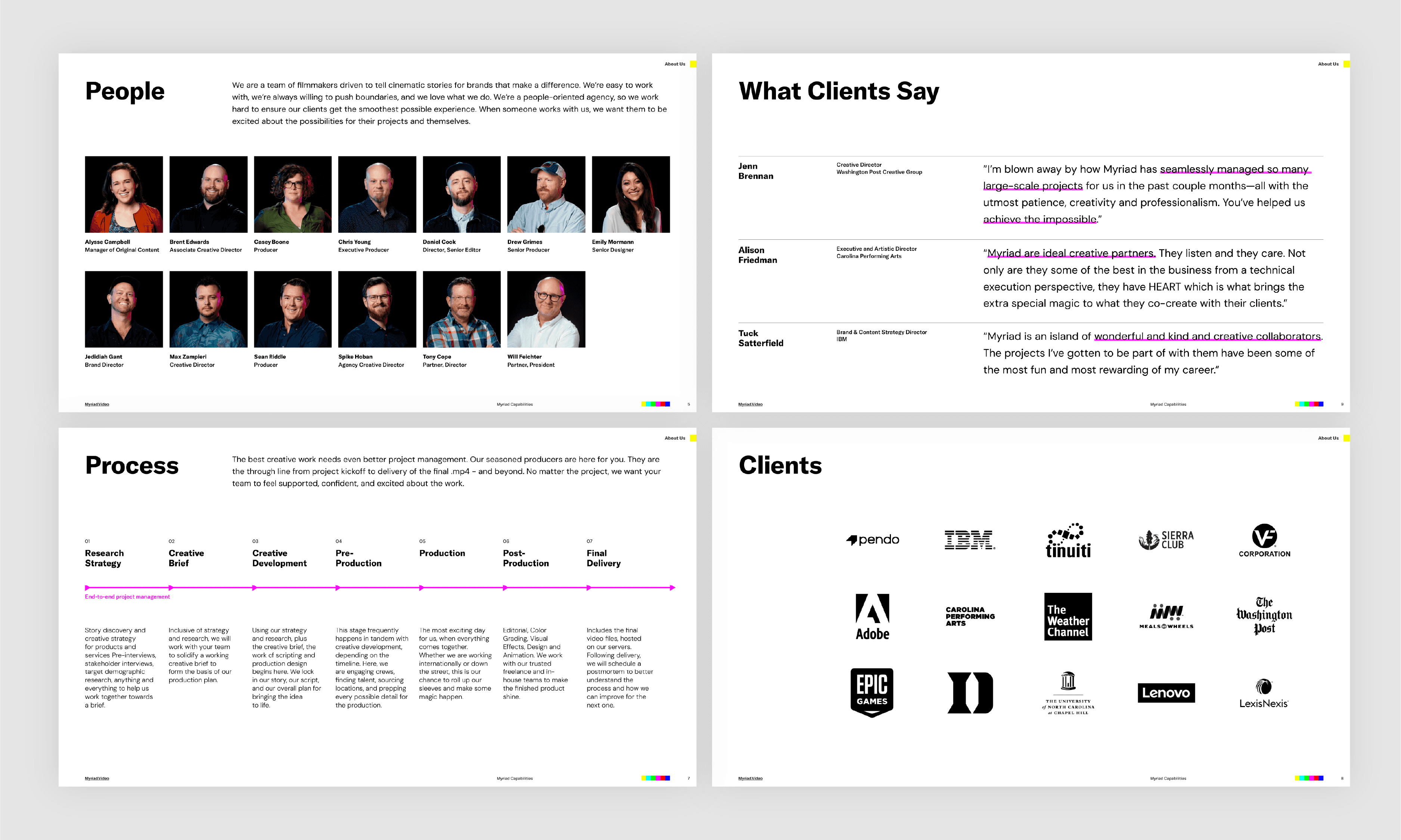 During my time at Myriad, I recognized the need for a sharp, well-designed capabilities deck that could be utilized by anyone on the team, and that coincided with a longstanding need to update the brand’s typographic system. I took the initiative to research hundreds of various fonts and propose a type refresh that aligned with our larger brand strategy. I then created a fresh Capabilites Deck template, supplemented with onboarding for my team and written instructions for use.